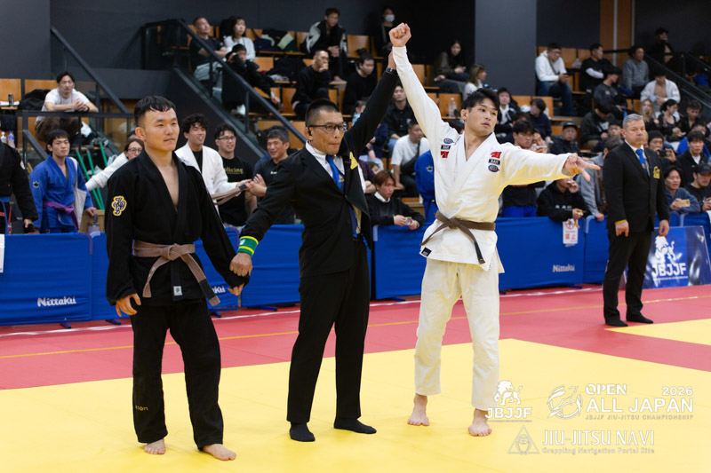 比家の引き込みに合わせた時任がスイープのポイントで2点を先制する。比家はクローズガードを起点に時にオープンガードとなりながら、攻め続けるが、時任もプレッシャー強く対応する。比家はポイントを得るには至らず。時任が序盤の2点を守り切って勝利した。