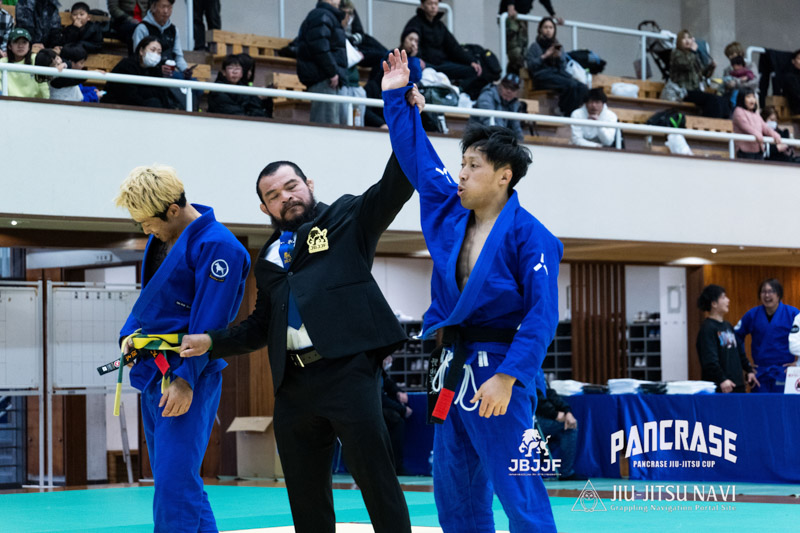 体格で勝る末澤がアドバンテージでとどまったものの、豪快に名倉を投げて本線の火ぶたが切って落とされる。そこから末澤がクローズガードに名倉を入れ、攻め手を探る展開が続く。残り1分となったところで名倉がオープンガードとなった末澤の足を取りにかかるが、末澤がスイープを成立させ、2点を先制する。これが決勝点となって、末澤が勝利を果たした。
