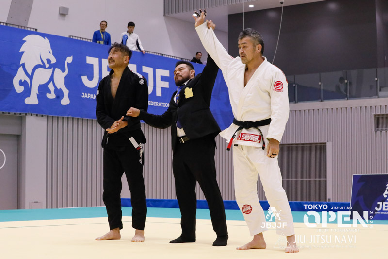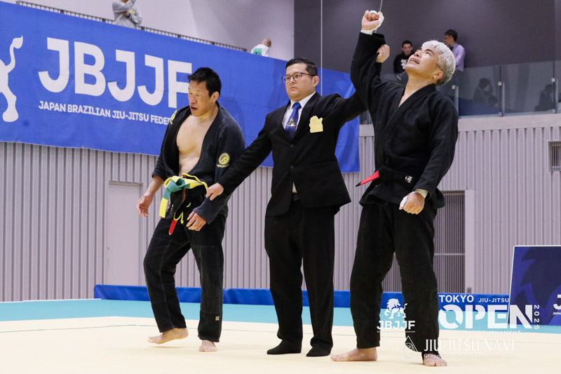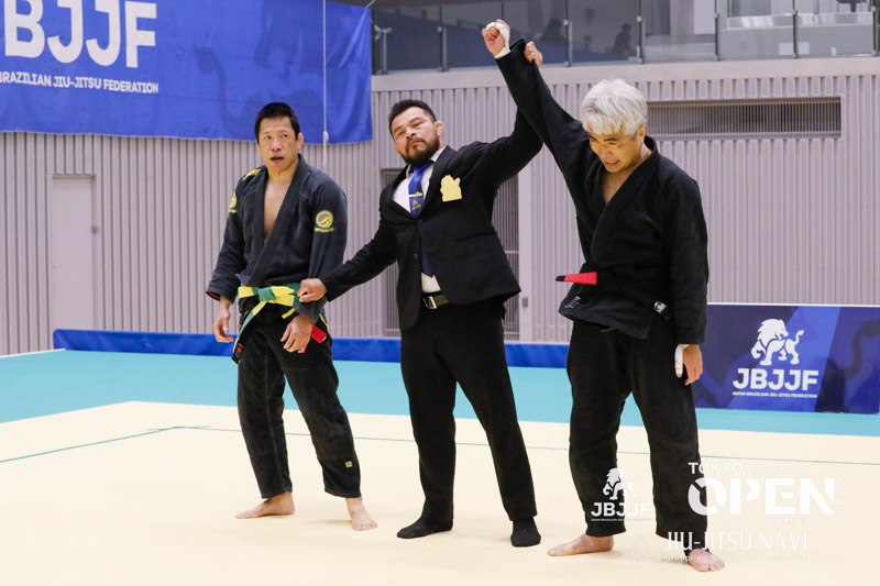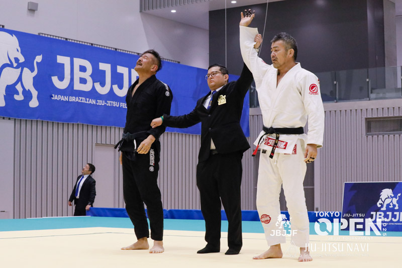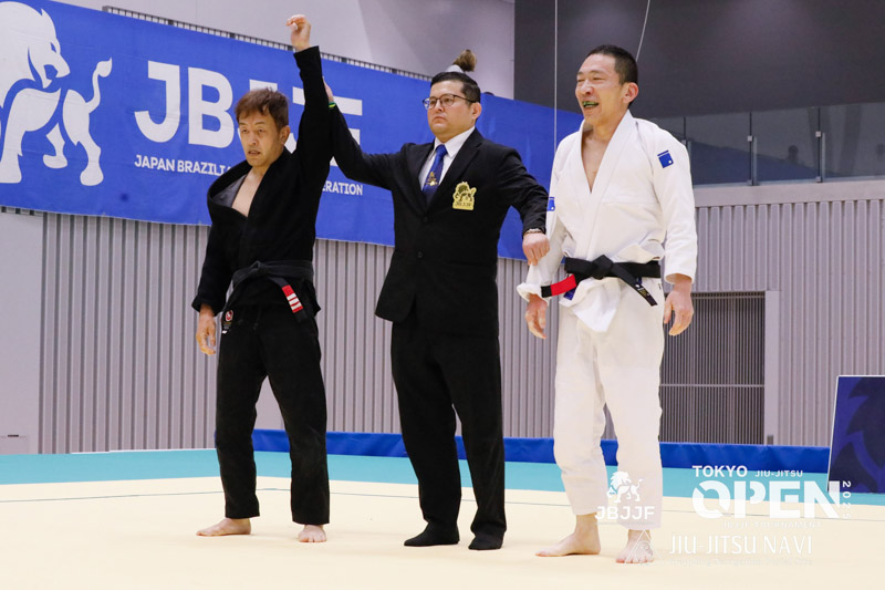 ベテランの宇原に熊谷が挑んだ一戦。ボトムから仕掛ける熊谷に対し、落ち着いてパスガードを決めた宇原が3点を先制する。その後、一本にこだわり腕十字、三角絞めと仕掛けていく宇原。最後はアームバーで極めた宇原の勝利となった。